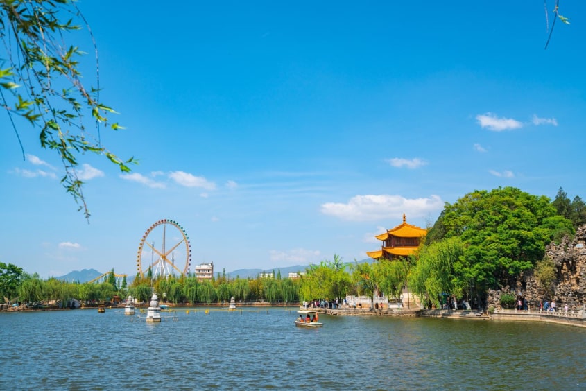- Công viên Đại Quan Lầu - là một trong những biểu tượng của du lịch Côn Minh, tỉnh Vân Nam, Trung Quốc. Đây là một trong những công trình kiến trúc thời nhà Thanh còn sót lại ở thành phố mùa xuân, mang vẻ đẹp cổ kính và độc đáo. vào năm Khang Hy thứ 29 (1690), thống đốc Vân Nam Vương Kế Văn đi ngang qua nơi này khi đang thị sát các khu vực xung quanh. Ông rất thích các hồ và ngọn núi ở đây nên đã cho xây dựng Quan Giá Đường, Mục Mộng Đình, Lậu Nguyệt Đình, Trừng Bích Đường lần lượt dọc theo bờ kè. Vào năm Hàm phong thứ năm (1855), Hoàng đế Hàm Phong đã trao tặng Đại Quan Lầu một tấm bảng hiệu "Bạt Lãng Thiên Tằng".